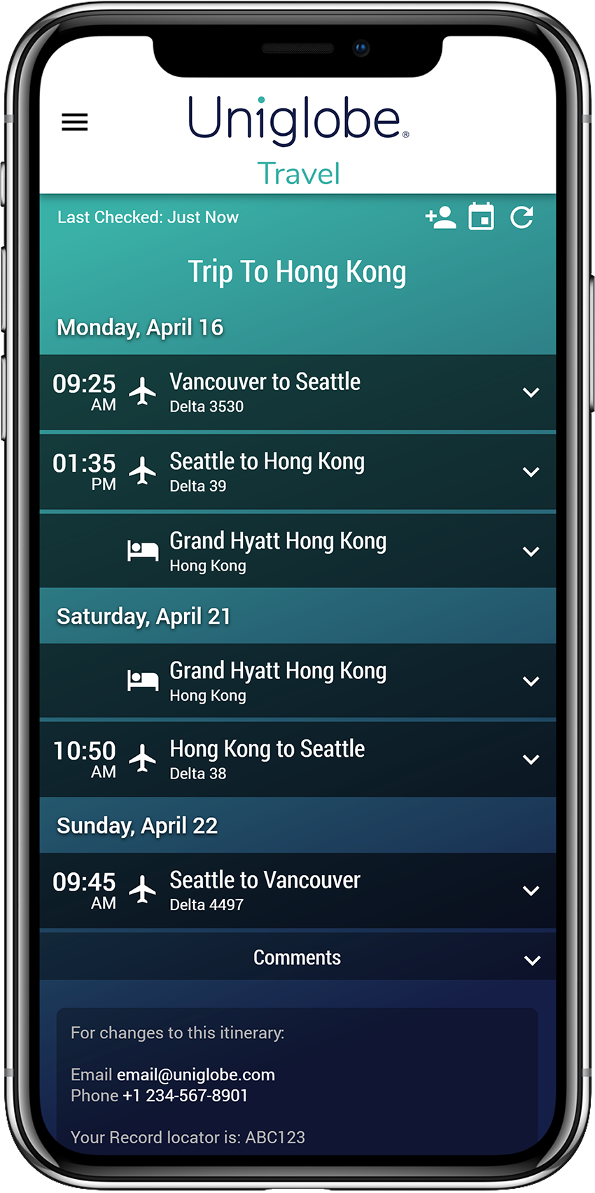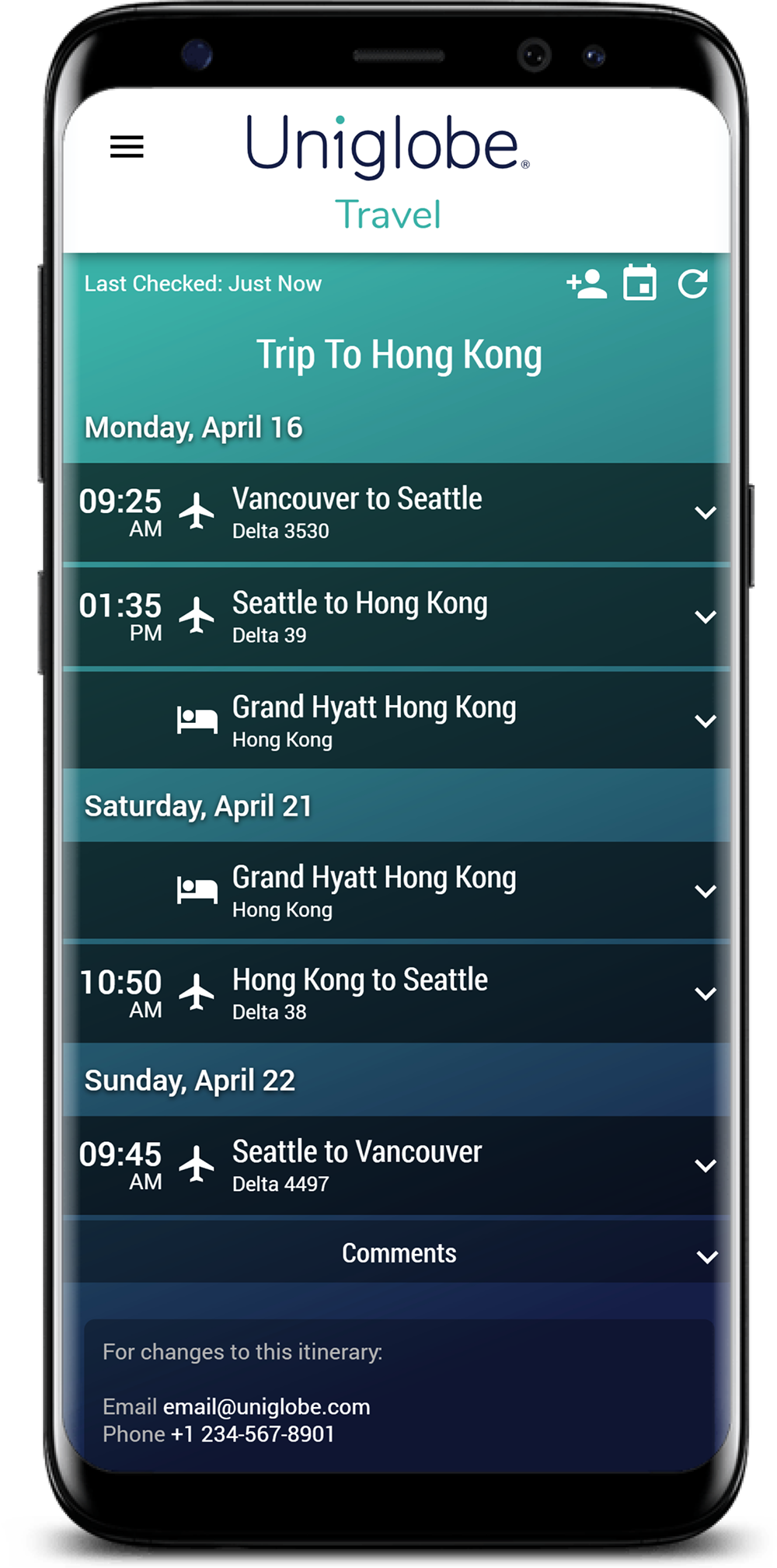 Simplify your entire travel experience! As a Uniglobe customer, you can access all of your trip information in one convenient place.