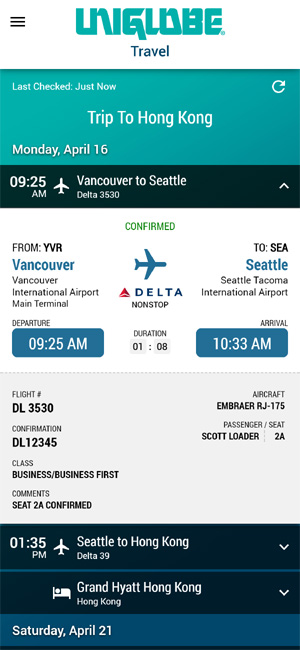 The Travel details you need most, with none of the unnecessary information. We’ve designed the display to make it easy for you access your complete itinerary.