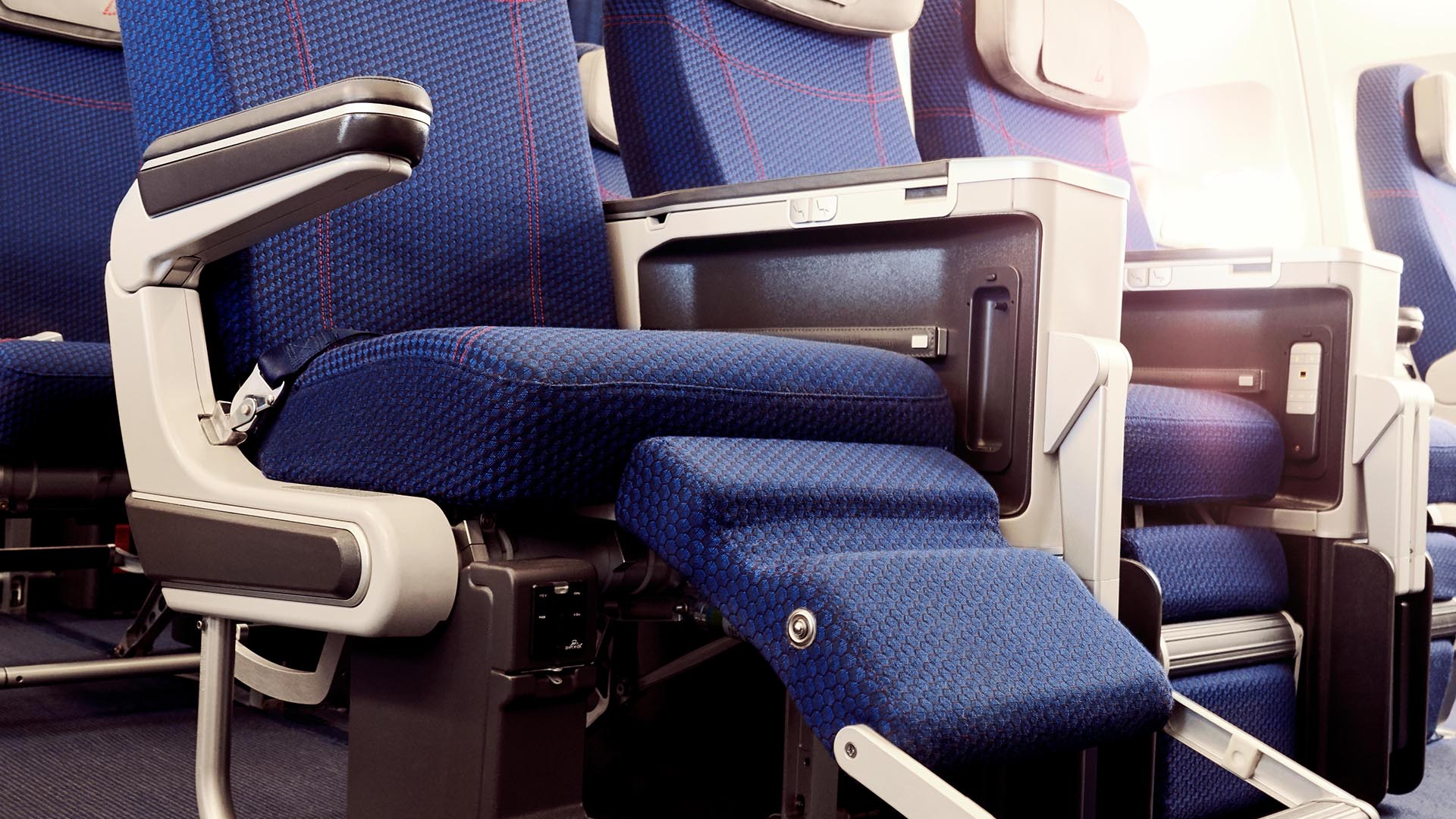 Sommige luchtvaartmaatschappijen verkopen de eerste rijen ook tegen een meerprijs. Je geniet van extra beenruimte, maar de rest van de service is dezelfde als in economy class.