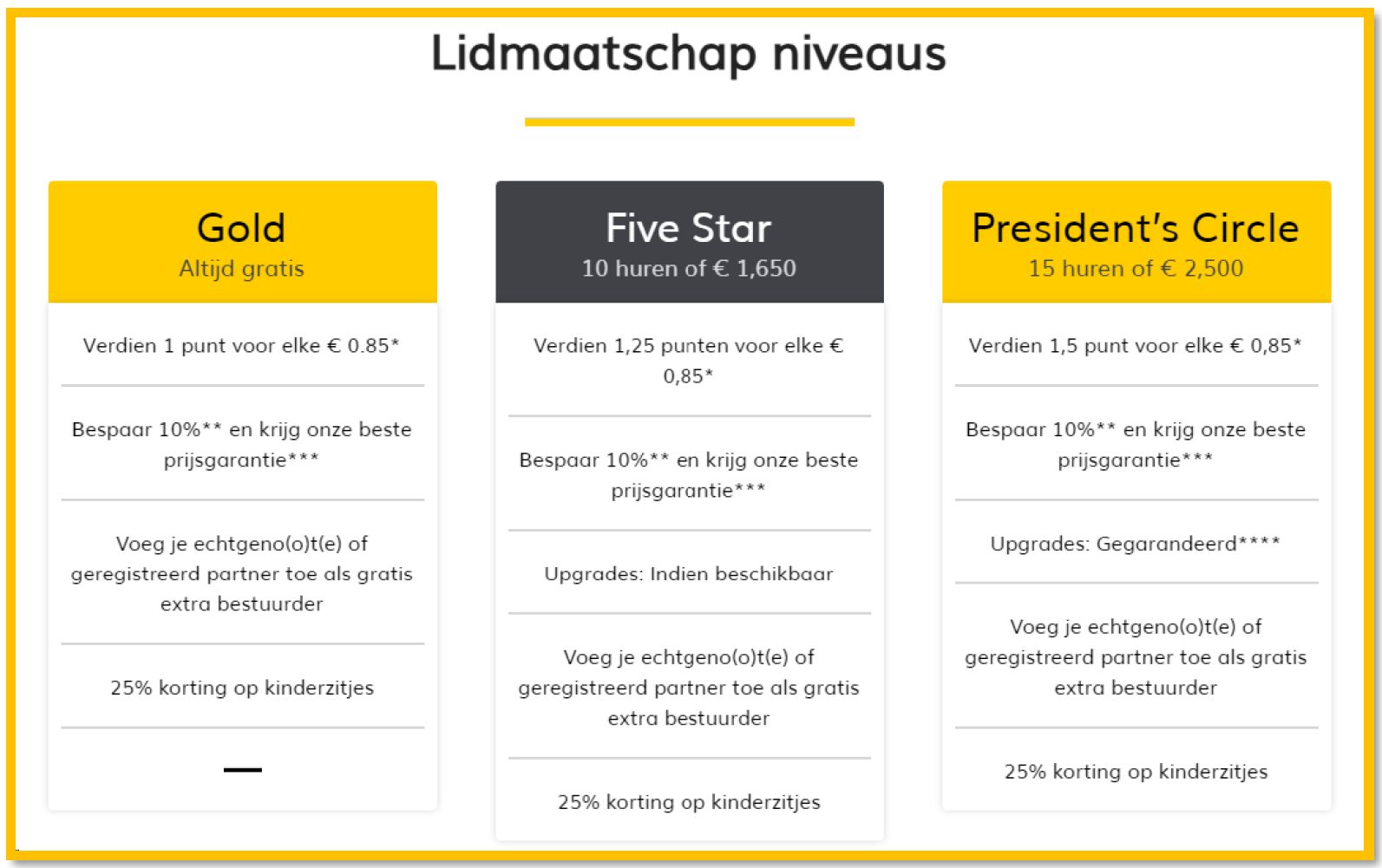 Het programma erkent ook de loyaliteit van haar leden door middel van een premium status voor frequentere huurders, wat leidt tot nog meer voordelen en gemakken. Een bijkomend voordeel is dat leden een gratis extra bestuurder kunnen toevoegen, zoals een echtgenoot of geregistreerde partner, wat de flexibiliteit tijdens reizen verhoogt.