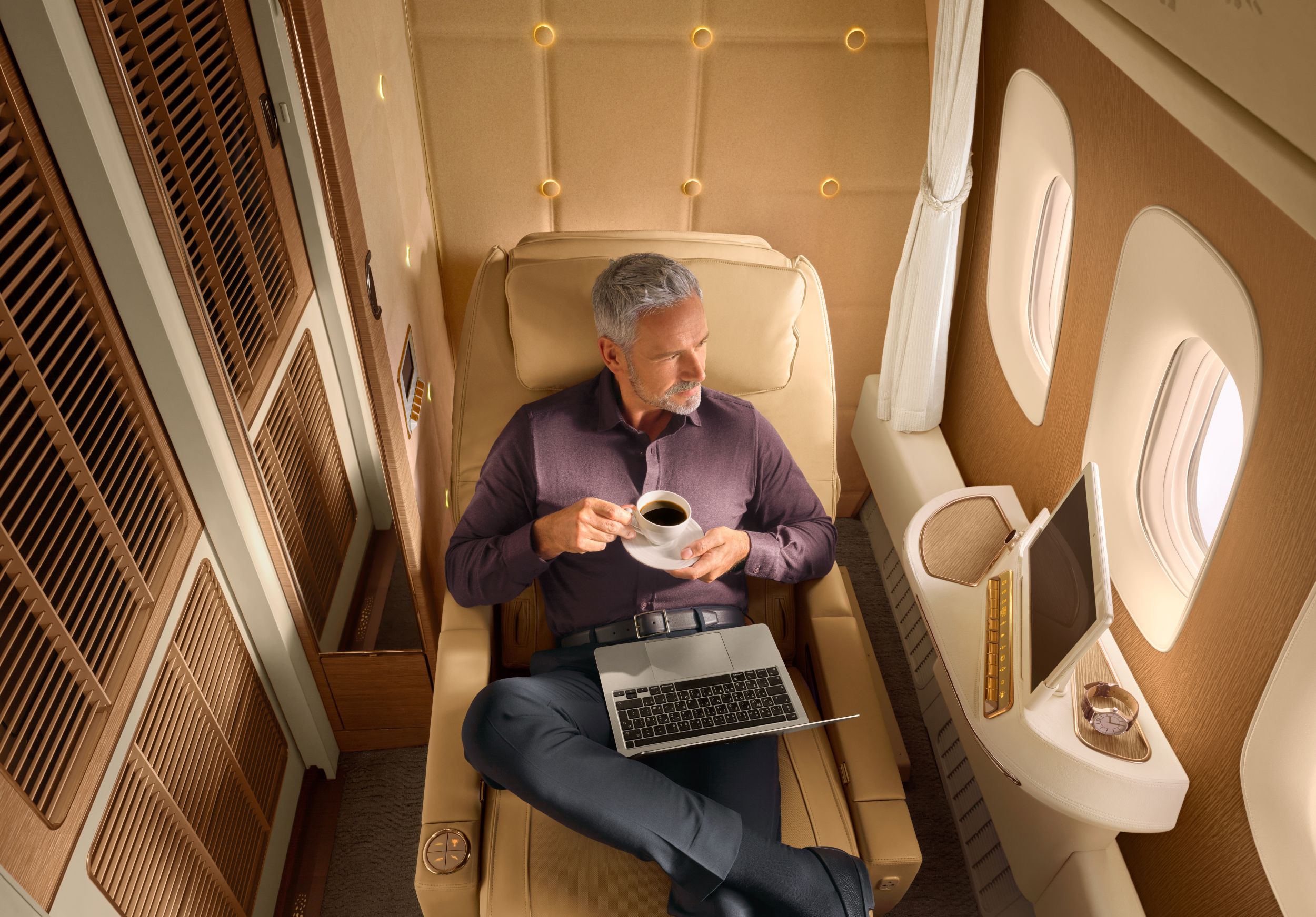 In de volledig afgesloten First Class suites ervaart u privacy en luxe van het hoogste niveau. De suites met geavanceerde lederen stoelen bieden een unieke, gewichtloze ontspanning. Geniet van persoonlijke roomservice, een uitgebreid gastronomisch menu en exclusieve wijnen. Luxe slaapoliën en hydraterende loungewear dragen bij aan uw welzijn aan boord.