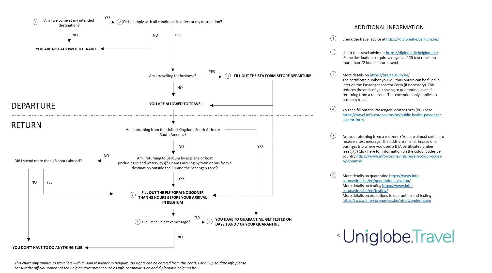 This info only applies to travellers with a main residence in Belgium. For all up-to-date info please consult the official sources of the Belgian government such as info-coronavirus.be and diplomatie.belgium.be